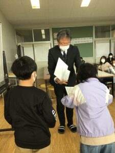 また、生活指導担当からは「ふゆやすみ作文」で、5つの内容について話がありました。「ふしんしゃにきをつける」「ゆっくりすごす」「やくそくを守る」「すみずみまでそうじする」「みんな元気に2023年1月10日に会いましょう」