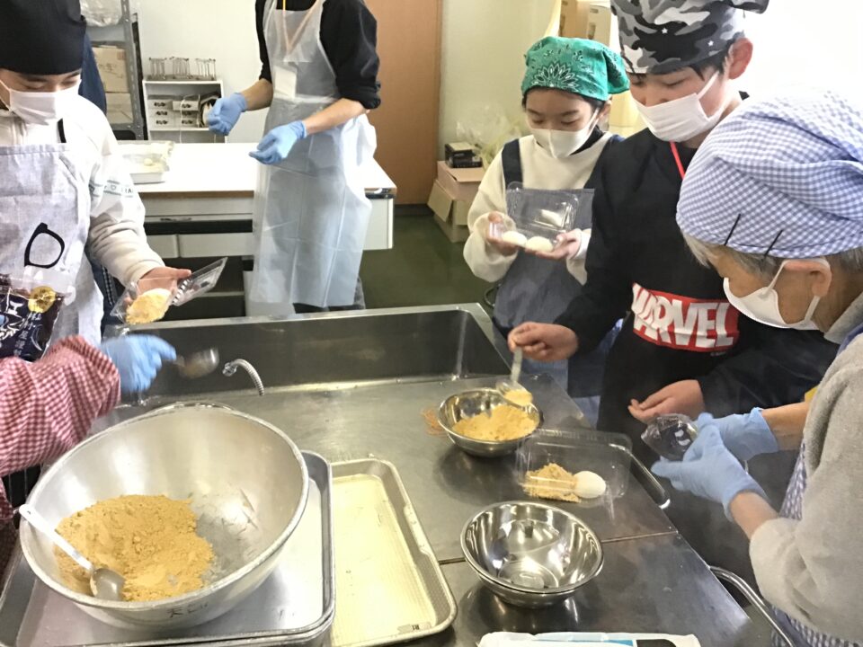 3月5日(火)毎年恒例の餅つき・花餅づくりを行いました。今年も、いなずま会の皆さんが事前にたくさん準備していただき、今回も実施の運びとなりました。朝早くから来校いただき、昨日のうちに「かしておいた」米を蒸して準備していただきました。できあがった餅はあんこ餅、きなこ餅にしていただきました。その後は給食もあり、満腹のお昼となったようです。また、卒業式に向け、花餅も作っていただき、5年生が飾りつけしました。