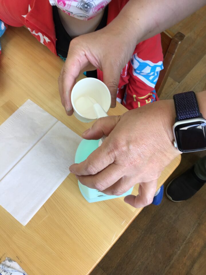 今年度から、天白小学校でフッ化物洗口が実施されることになりました。低学年の児童が対象で、まずは2年生が毎週火曜日に先行実施しています。口をゆすいでの洗口後30分ほどは飲食をしない方が高い効果が見込まれるため、天白小では授業前の朝の会や朝の学習時に実施しています。フッ化物洗口は、就学前の幼・保で既に実施経験のある児童も多く、紙コップに入れてもらった洗口液を口に含み、音楽に合わせて口をゆすいだ後、洗口後は、再びコップに戻しティッシュでこぼれない様にして廃棄します。この一連の活動、どの児童も慣れたものです。
