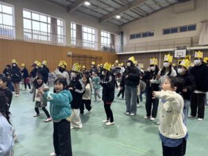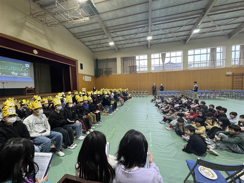 1年生からは、6年生への感謝の気持ちを込めて、お祝いの言葉や歌を届け、手作りのメダルと王冠をプレゼントしました。6年生は、その王冠を1日中かぶって過ごし、特別な気持ちを味わっていました。お別れ会の中では、みんなで「じゃんけん列車」を楽しみ、「パプリカ」を元気いっぱいに踊りました。6年生からも、心のこもった歌のプレゼントがあり、温かい雰囲気に包まれました。