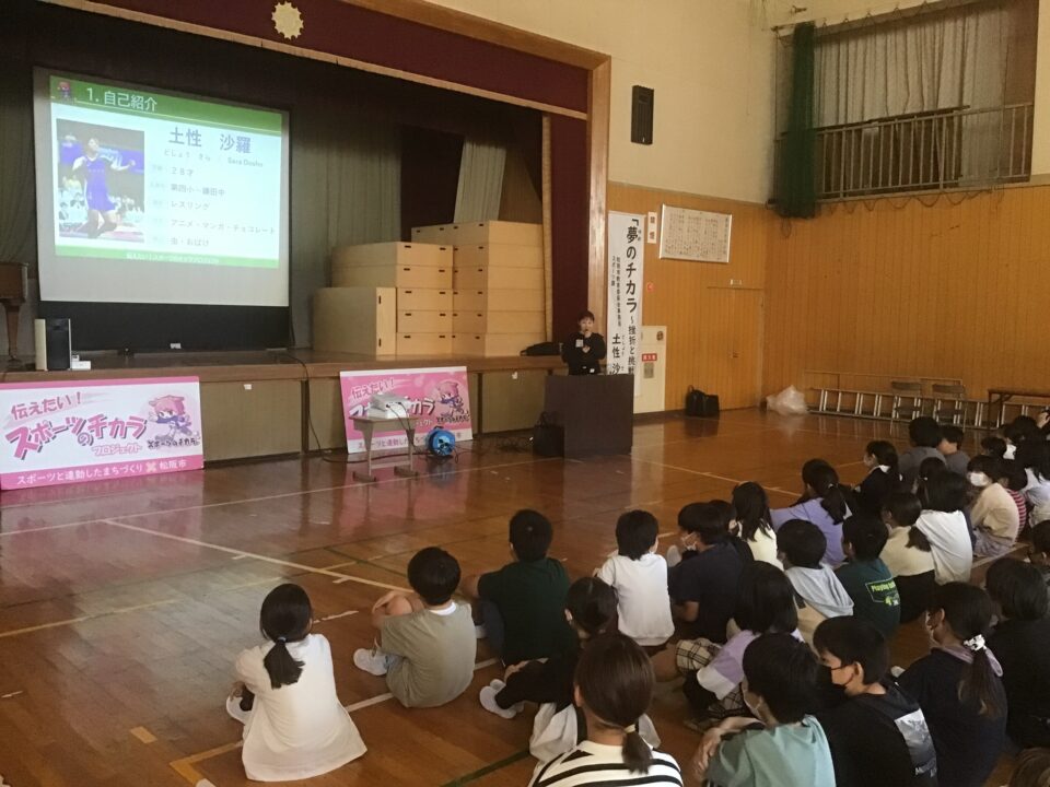 ホーム > 日々の活動の様子 土性沙羅さん来校第2弾 土性沙羅さんが「伝えたい!スポーツのチカラプロジェクト」で2度目の来校をしてくれました。今回は4,6年生が受講しました。 今回も、前回とほぼ同様内容で講演していただきました。土性さんの小学生の頃の話や、世界一になるまでの道のり、大切にしていることなどをお話しいただき、その後、おんぶしてもらったり、ひっくり返そうと試みたり、持ち上げてもらったりと金メダリストの力強さを体感しました。また、実際のリオ五輪の金メダルも見せていただきました。それぞれの活動の度に子どもたちからはどよめきが起こるほど、大きな反応がありました。 タグ:2023年度 シェアする Twitter でシェア はてなブックマークに保存 LINE でシェア Facebook でシェア Pocket に保存 Feedly で購読 関連投稿 日々の活動の様子 修了式・離任式 日々の活動の様子 愛校作業 日々の活動の様子 夏の星空観望会 日々の活動の様子 夏休み前集会 日々の活動の様子 修学旅行 友禅染体験 日々の活動の様子 とまとーずさんと交通安全教室 前の投稿 オンラインで社会の学習 次の投稿 1,2年生サツマイモ掘り