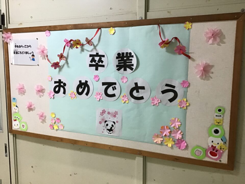 校内も卒業を祝う掲示物をたくさん用意し、お祝いムードに花を添えました。