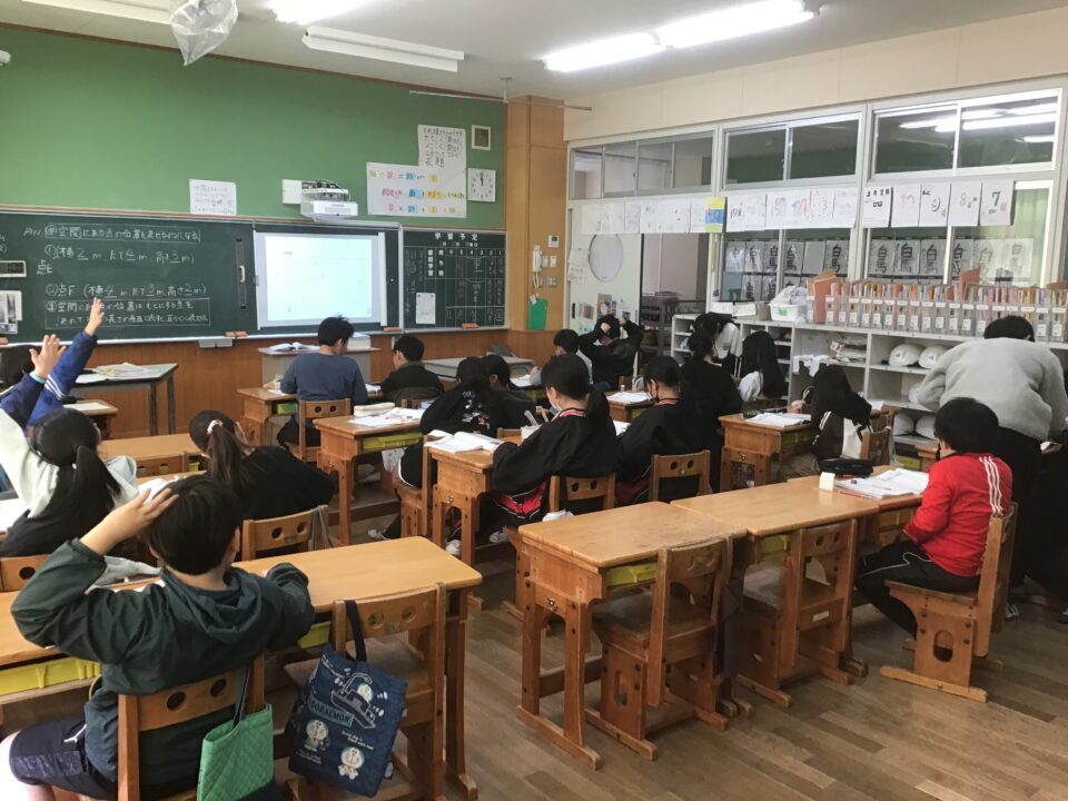 総合のまとめをしていました。ロイロノートの共有ノートを使いながら班のみんなでまとめていました。