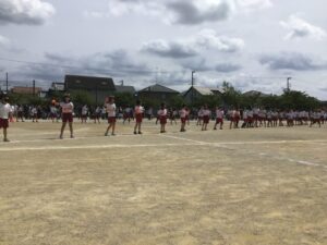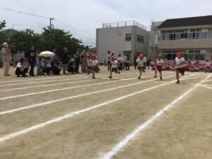 後半には2,4,6年生が演技を行いました。後半は、それぞれの学年で徒競走を行ったあと、親子競技、表現と続きました。