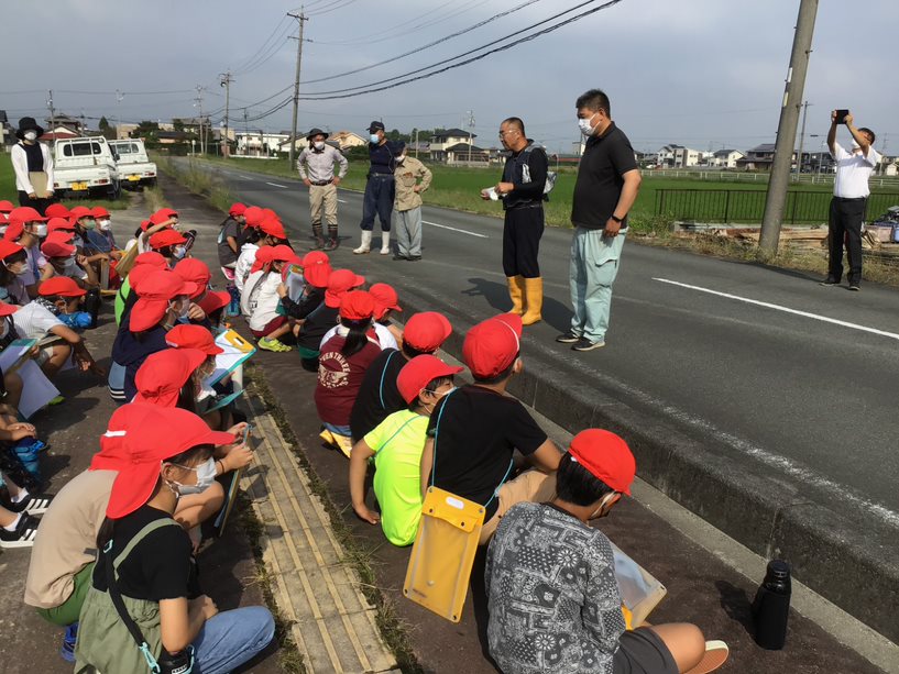 3年生が、地域の花井さんのいちじく畑に社会見学に行きました。夏休み前には学校で、いちじくが三雲地域で盛んに栽培されていることを学習した3年生ですが、今回は実際に、収穫時期を迎えた畑に伺いました。地域で栽培されているというものの、大半の児童にとって、畑に何本何十本と植えられているいちじくの畑に触れるのは初めての経験で、「こんなにいっぱいいちじくの木が植えられているとは思わなかった」「おいしそうな実がたくさんなっている」という声が聞かれました。帰りには花井さんからいくつかいちじくのお土産もいただきました。おいしく食べられたかな。