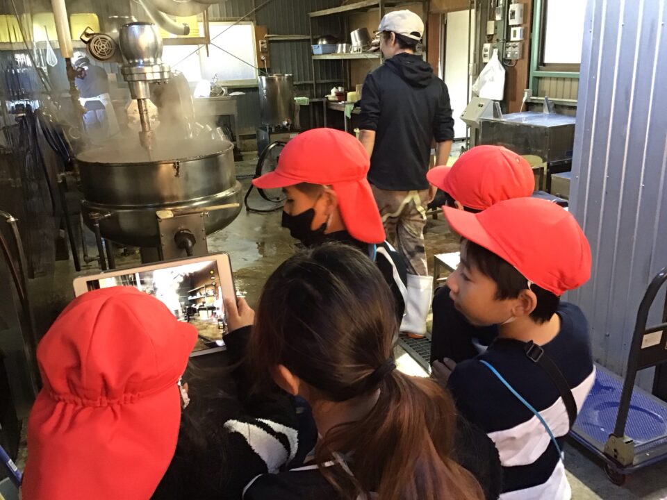 子どもたちは店内や作業場を見学した後、事前にお尋ねしようとしていた質問をしていました。今後、子どもたちは今回聞き取ってきたことをクラスのみんなで共有し、新たな疑問を考え、学びを深めていきます。