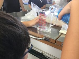 自分たちでお米を洗い、水の量を量ってお湯が入ったお鍋に入れていきます。鍋の中で30分炊くと完成です。