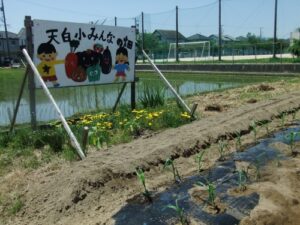 5月14日(木)、いなずま会のみなさんと3年生の担任で、学校の畑にとうもろこしの苗を植えました。子どもたちが植えられなかったのは残念ですが、学校が再開されたら観察をしたり、収穫をしたりしていきます。
