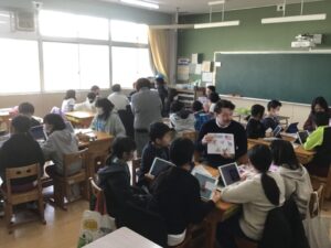 ホーム > 日々の活動の様子 5年生イングリッシュデー 12月18日は、イングリッシュデーとして、5年生の児童が5人のALTさんと一緒に外国語活動を行いました。自作の名刺を交換した後、それぞれ自己紹介しあい、事前に準備した三重県の紹介を行ったり、そこから英語でコミュニケーションを行ったりしました。普段とは違って数人に1人の方と過ごすので少し緊張感もあったようですが、終わった後には、「うまく話し合うことができて楽しかった」などの感想がありました。 タグ:2023年度 シェアする Twitter でシェア はてなブックマークに保存 LINE でシェア Facebook でシェア Pocket に保存 Feedly で購読 関連投稿 日々の活動の様子 第38回松阪市小学校サッカー大会2日目 日々の活動の様子 修学旅行 友禅染体験 日々の活動の様子 第5回PTA全委員会 日々の活動の様子 愛校作業 日々の活動の様子 後期児童会選挙 日々の活動の様子 心肺蘇生法講習 前の投稿 2023年年末の学級活動 次の投稿 冬休み前集会