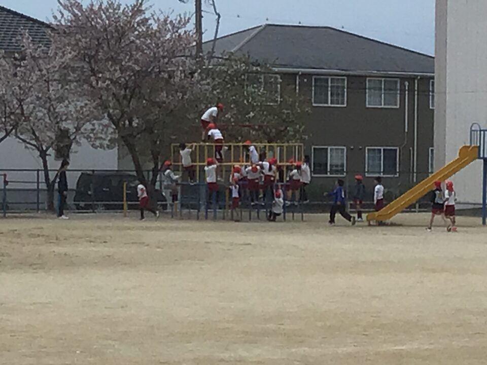 準備体操をし運動場を走った後、50m走の記録を計りました。