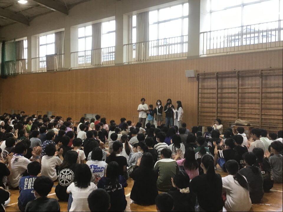 その後、前期児童会役員のみなさんからの一言がありました。前期の児童会で取り組んできた活動のこと、運動会の司会、スタンプラリーの取組、最後までしっかり伝えることができていました。