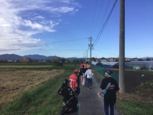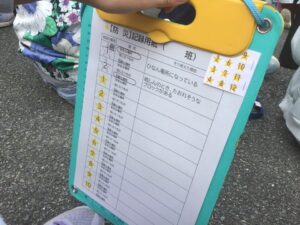 西代、月本、中林の各地区を、交通安全、防犯、防災の視点から見つめ、写真を撮り、地図に落とし、記録していきます。町を歩いている間は、写真を撮る係、記録をする係、タイムキーパー、地図係と役割分担をしながら行いました。
