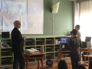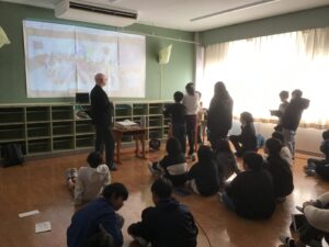 6年生では、天白小学校のことを各グループが英語で紹介をしました。天白みんなの秋まつりで歌った曲について、修学旅行で行った金閣寺や清水寺などについて英語で紹介しながら写真も見せることができました。また、台湾の小学生と質問しあう機会もありました。台湾の子どもたちからは、好きなアニメの話を伝えていました。