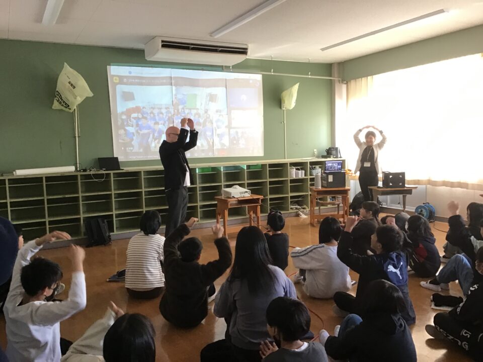 5年生では、日本の各地域の食べ物のことや学校の様子について英語で紹介しました。「好きな色はなにですか?好きな食べ物はなにですか?」と台湾の小学生から質問されると、天白小の子どもたちも進んで英語で答えることができていました。また、じゃんけんタイムやダンスでは、画面越しでしたが大変盛り上がりました。