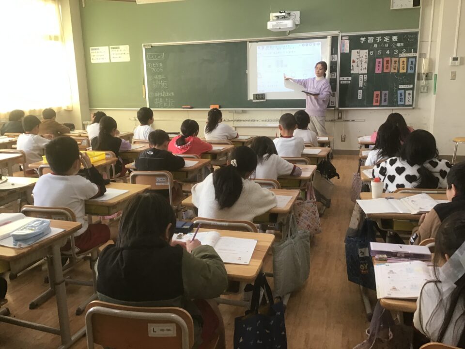 ホーム > 日々の活動の様子 教室から(1年生・2年生) 1年生教室では、算数の授業でした。大きな数について学習していました。一人ひとりがタブレットで数を確認しながら数えていました。10のまとまりを意識て、丸で囲みながら数えることができていました。 2年生教室では、算数と国語の授業でした。算数では、大きなかずの仕組みについて、空位があるときには「0」を忘れずに書くなど確認しながら数えていました。 また、国語では、ロボットの説明文について読み取りをしていました。教科書から「どんなことが書いてあるのか」一人ひとりがノートに書くことができました。 シェアする Twitter でシェア はてなブックマークに保存 LINE でシェア Facebook でシェア Pocket に保存 Feedly で購読 関連投稿 日々の活動の様子 みえスタディチェック 日々の活動の様子 たこあげしたよ(2年生) 日々の活動の様子 修学旅行10 日々の活動の様子 卒業式 日々の活動の様子 卒業式 日々の活動の様子 お話会(6年生) 前の投稿 九九チャレンジ大会(1日目)