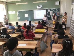 今日の算数の時間は、先週に引き続いてCSの学習ボランティアさんと一緒に九九(6~9の段)のテストを行いました。