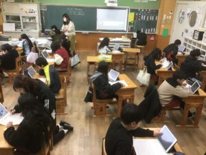 ホーム > 日々の活動の様子 第2回みえスタディ・チェック(5年生) 1月26日(月)、1、2限目にみえスタディ・チェックを行いました。 第2回の今回は5年生のみの実施となりました。教科は国語と算数でした。タブレットで答える問題と記述で答える問題があり、一生懸命考える姿が見られました。また、今回の調査に向けて、朝の学習やプリントチャレンジ等で対策を行い、当日に備えました。 今回の結果をもとに、弱点を克服しつつ次年度に繋げていきたいと思います。 シェアする Twitter でシェア はてなブックマークに保存 LINE でシェア Facebook でシェア Pocket に保存 Feedly で購読 関連投稿 日々の活動の様子 引き渡し訓練を行いました。(全学年) 日々の活動の様子 教室から(6年生) 日々の活動の様子 CS広報誌「クローバー」 日々の活動の様子 町たんけん~三雲地域振興局・三雲公民館~(3年生) 日々の活動の様子 穏やかに健やかに 日々の活動の様子 3年生 図工の作品 前の投稿 北部給食センター見学(2年生) 次の投稿 全国学校給食週間