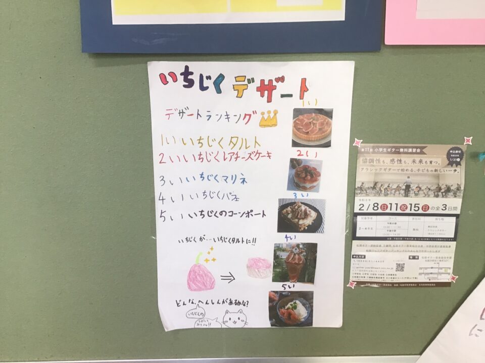 ホーム > 日々の活動の様子 「いちじく」についてお知らせします(3年生) 3年生の子どもたちは、総合的な学習の時間に「いちじく」について学習しています。三雲地域の特産物である「いちじく」についてもっと知ってもらうために、ポスター、冊子、クイズ、放送などいろいろなやり方で広めています。 今日は、放送室に3年生の子どもたちがやってきて、全校のみんなに呼びかけていました。 シェアする Twitter でシェア はてなブックマークに保存 LINE でシェア Facebook でシェア Pocket に保存 Feedly で購読 関連投稿 日々の活動の様子 任命式を行いました 日々の活動の様子 給食最終日 日々の活動の様子 5年生イングリッシュデー 日々の活動の様子 九九チャレンジ大会(2回目)(2年生) 日々の活動の様子 修学旅行④ 日々の活動の様子 教室から(4年生・5年生) 前の投稿 委員会活動