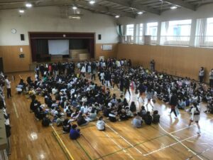 また、6年生からは学校のためにと、家庭科の時間に作った雑巾をプレゼントとして贈られました。6年生の卒業まであと少しですが、みんなで楽しく過ごすことができました。
