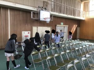ホーム > 日々の活動の様子 卒業式に向けて会場準備(5年生) 3月18日(水)に行われる卒業式に向けて、5年生の子どもたちが会場準備を行いました。 体育館一面にシートを張り、イス、演台を設置しました。5年生の先生の指示をよく聞きながらてきぱきと作業をしていました。 シェアする Twitter でシェア はてなブックマークに保存 LINE でシェア Facebook でシェア Pocket に保存 Feedly で購読 関連投稿 日々の活動の様子 引き渡し訓練 日々の活動の様子 「とうふ入りきなこだんご」を作ろう(3年生) 日々の活動の様子 気持ちよく新年を・・・ 〜大掃除〜 日々の活動の様子 着衣水泳を行いました。(全校) 日々の活動の様子 フランス料理 日々の活動の様子 愛校作業 前の投稿 愛校作業(6年生)