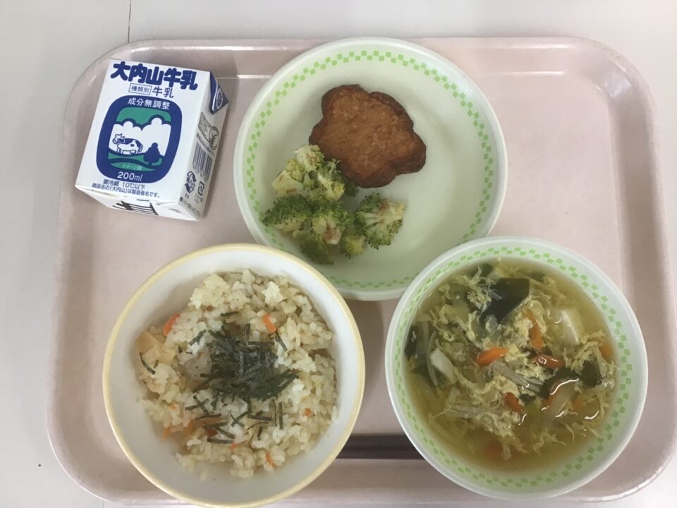 ホーム > 日々の活動の様子 和食の日(ひなまつりの行事食) 本日3月3日は、ひなまつりです。給食もひなまつりにちなんだ献立でした。 「ちらし寿司」、「花形はんぺん」、「ブロッコリーのおかかあえ」こんぶとかつおぶしでだしをとった「かきたま汁」でした。「かきたま汁」は子どもたちに大好評で、何回もおかわりに来るなど、完食しているクラスがたくさんありました。 いつもおいしい給食を作っていただき、ありがとうございます。 シェアする Twitter でシェア はてなブックマークに保存 LINE でシェア Facebook でシェア Pocket に保存 Feedly で購読 関連投稿 日々の活動の様子 冬休み前集会 日々の活動の様子 修学旅行日記11 日々の活動の様子 修学旅行4 日々の活動の様子 避難訓練(火災) 日々の活動の様子 おかえり永尾先生 日々の活動の様子 教室から(1年生) 前の投稿 卒業式に向けて会場準備(5年生)
