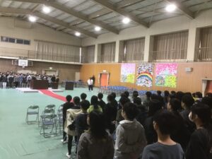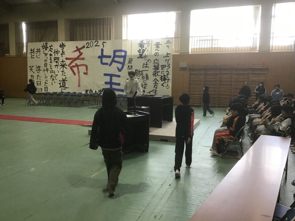 ホーム > 日々の活動の様子 卒業式に向けて 今日の練習は、卒業生の入場と呼びかけでした。 予行練習を振り返って、「歩く時は顔をあげて」「呼びかけのタイミングは、間をとっていこう」「言葉をはっきり伝えよう」など具体的な声掛けがたくさんありました。練習が始まったころより声もよく出るようになって日に日によくなってきています。 卒業式に向けて体調を整えていきましょう。 シェアする Twitter でシェア はてなブックマークに保存 LINE でシェア Facebook でシェア Pocket に保存 Feedly で購読 関連投稿 日々の活動の様子 6年生 社会見学1 日々の活動の様子 とまとーずさんによる交通安全教室 日々の活動の様子 九九チャレンジ大会(1回目)(2年生) 日々の活動の様子 今日の給食は「デザートセレクト」 日々の活動の様子 社会見学(3年生) 日々の活動の様子 交通安全の「のぼり」 前の投稿 卒業式に向けて(予行練習) 次の投稿 教室から(1年生)